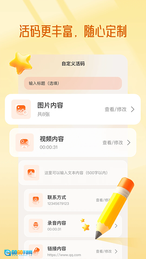 2、支持活码生成功能,生成后的二维码无需更换,即可直接修改其承载的内容,为运营工作提供便利支持