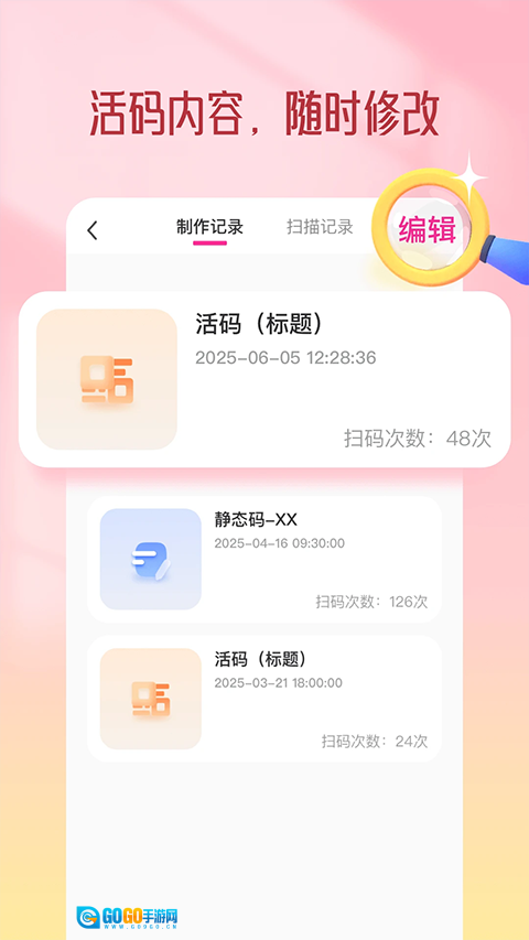 5、历史记录:系统会自动保存扫码操作与内容制作的相关记录,方便后续进行导出和查询操作。