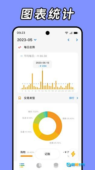 3、图表展示:以柱状图、饼图等形式直观呈现每月开销分布,帮助了解资金流向和消费偏好。
