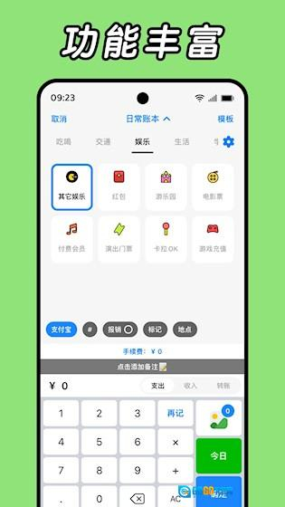 2、分类清晰:预设多种常见收支类别,如餐饮、交通、购物等,也可自定义标签,便于后期统计分析。
