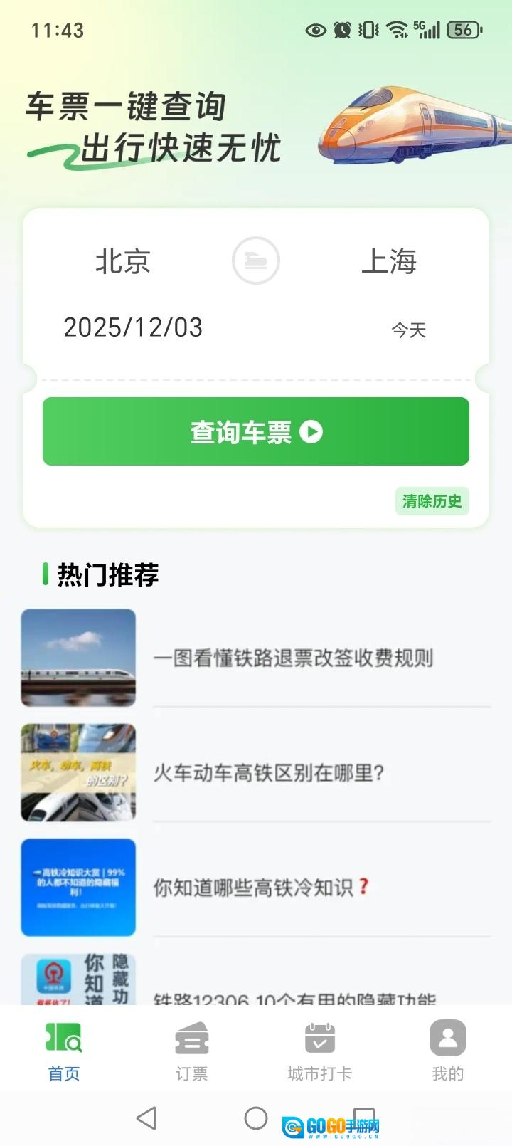 火车高铁余票免费查是一款专业的铁路票务信息查询工具应用,专注于为用户提供全国所有铁路车次的准确、实时且免费的余票查询服务,助力用户轻松了解出行票务动态,从而制定出最佳的出行计划。