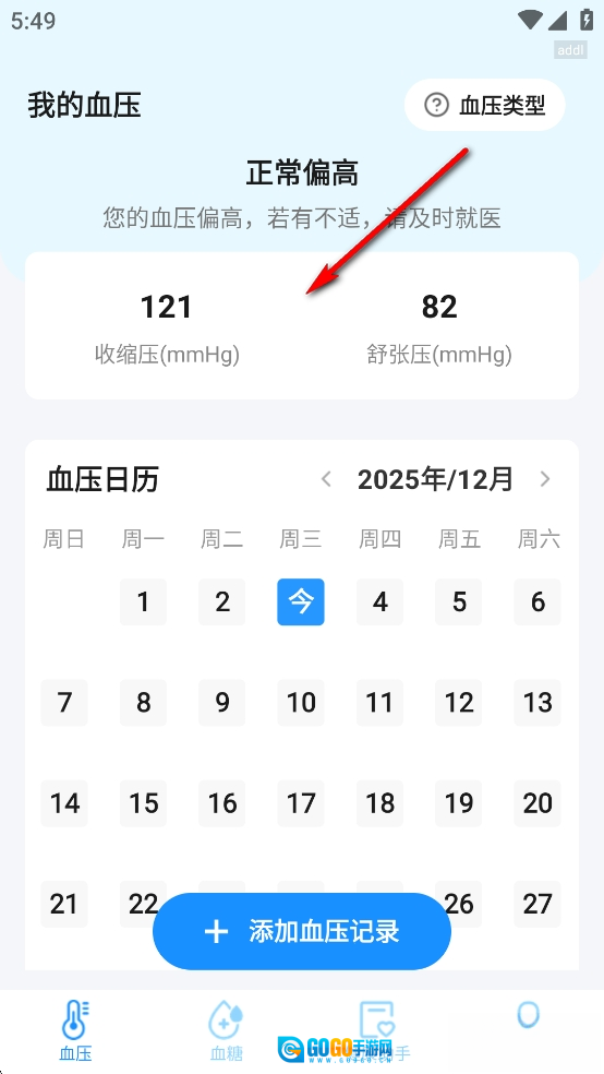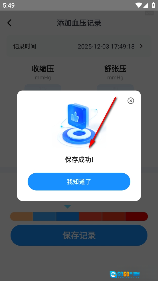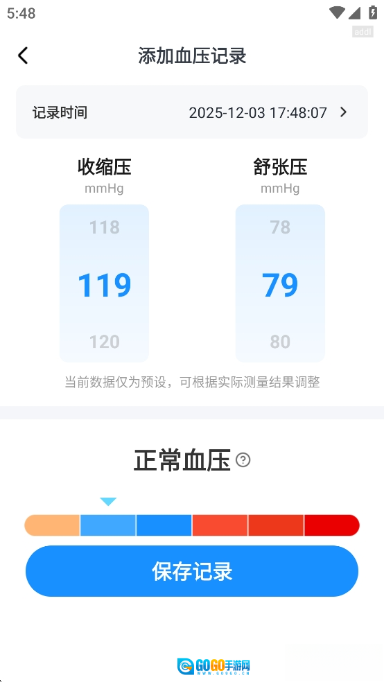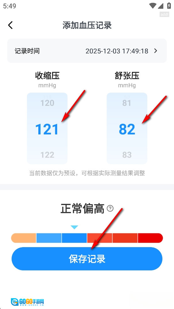 选择【收缩压】和【舒张压】,然后点击【保存记录】