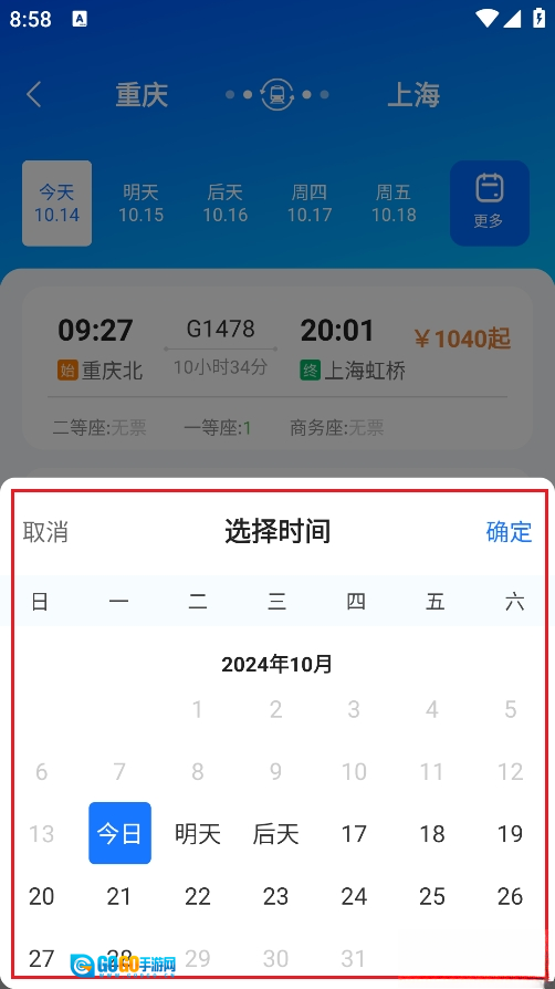 5、点击某一车次的车票进入,即可查看该座位等级是否有票