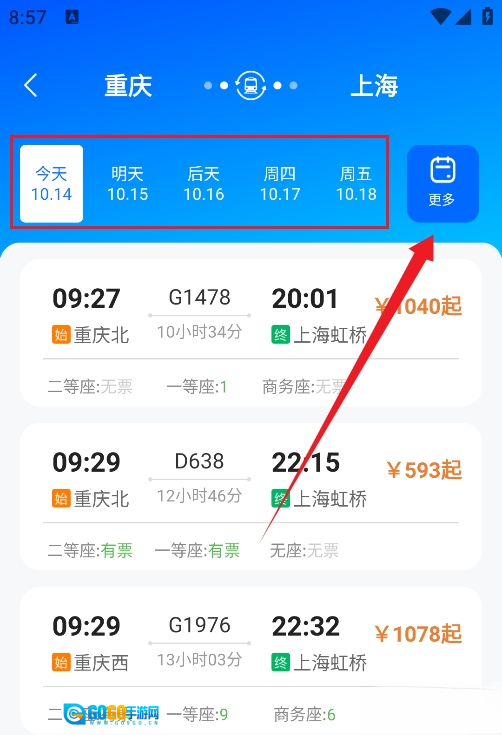4、当车票信息显示出来后,您可以点击【更多】按钮,再依据自身的出行安排,选择查看具体某一天的车票信息。