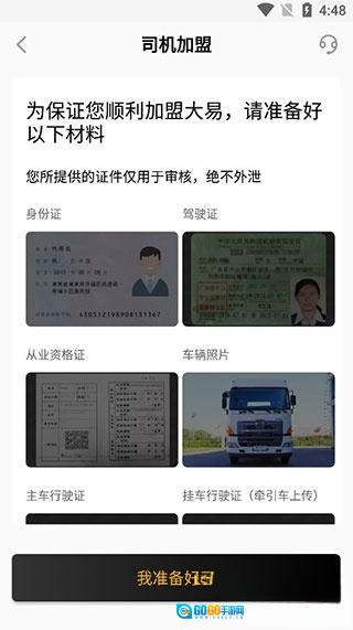 2、司机加盟,为了保证您顺利加盟大易,请准备好以下材料,点击我准备好了;