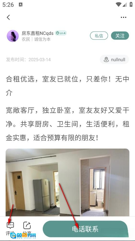 3、挑选合适的帖子进入,接着点击下方的电话联系按钮或者评论区留言
