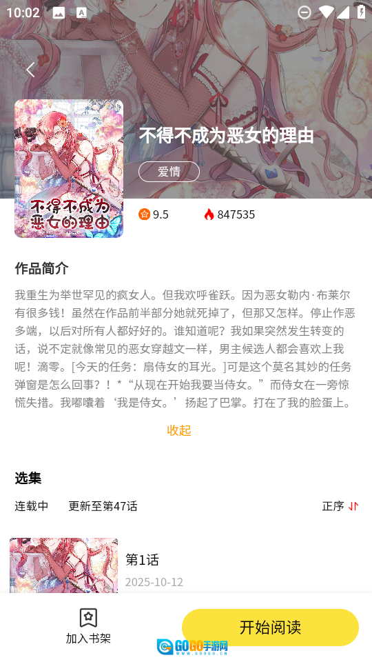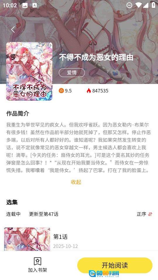 2、随后随意挑选一部自己喜欢的漫画来阅读,这里就以《不得不成为恶女的理由》这部作品作为例子。