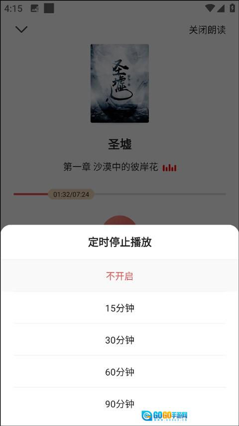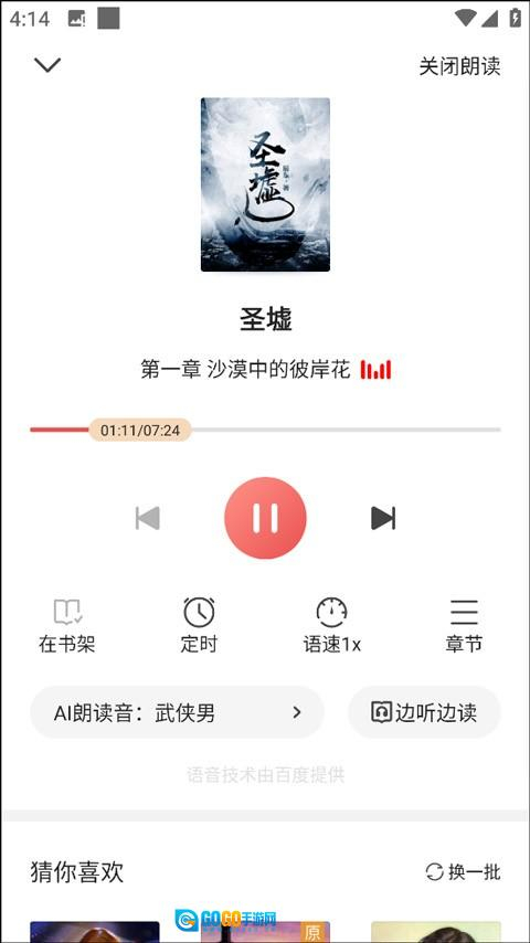 在听书界面,我们能够进行定时设置、语速调整、章节切换等多项功能操作。