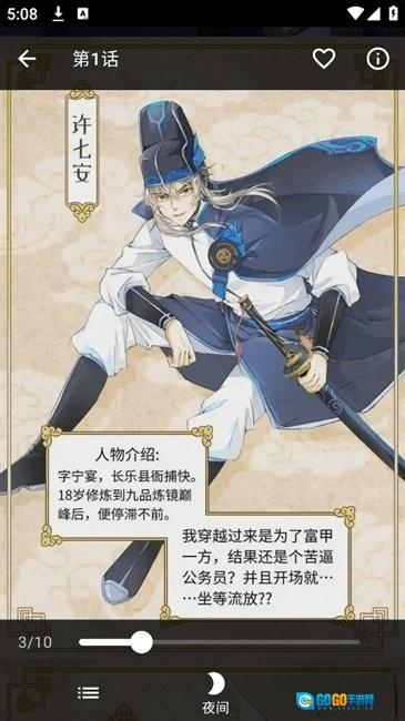 3.点击屏幕即可唤起功能页面,若您对该作品感兴趣,可点击阅读页面上方的心形图标将其加入书架(添加至书架功能需登录账号)