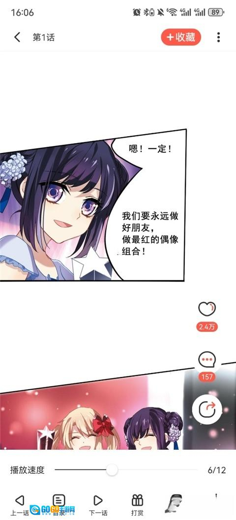 4、点击自动播放就会自动播放漫画了,用户不需要手动滑屏了,支持调节播放速度。