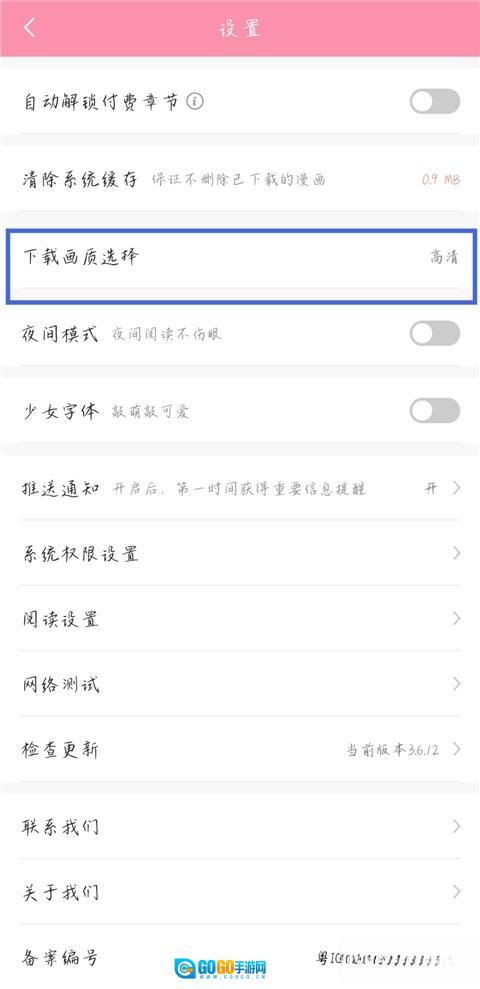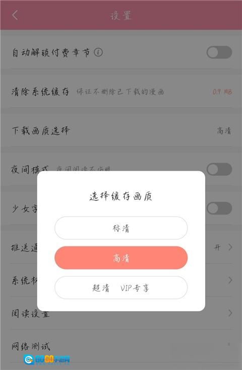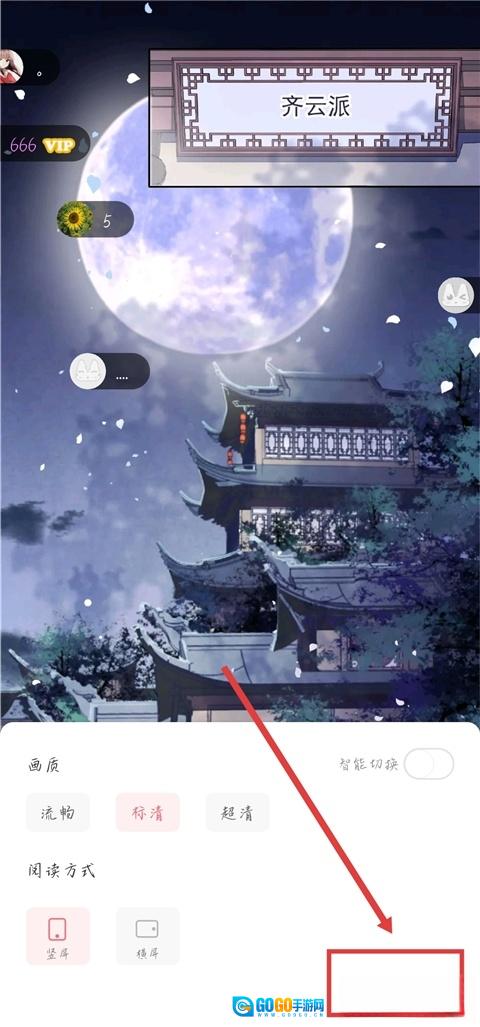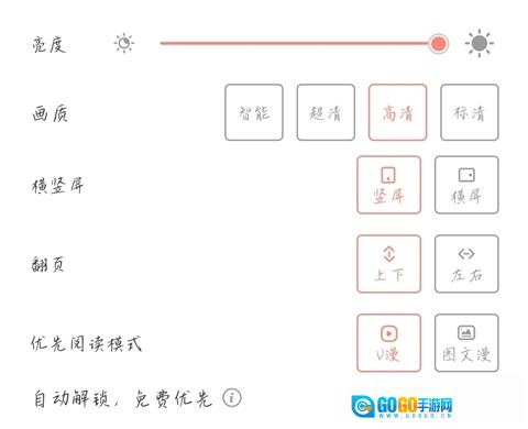 1、进入漫画章节中,在设置页可调节画质、翻页方式等。