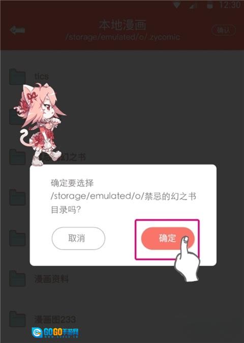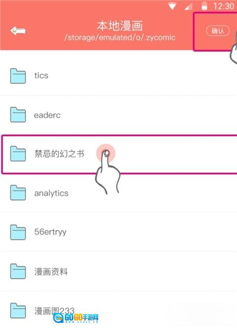 3、找到存漫画的地方,选择漫画文件夹,点击右上角【确认】。