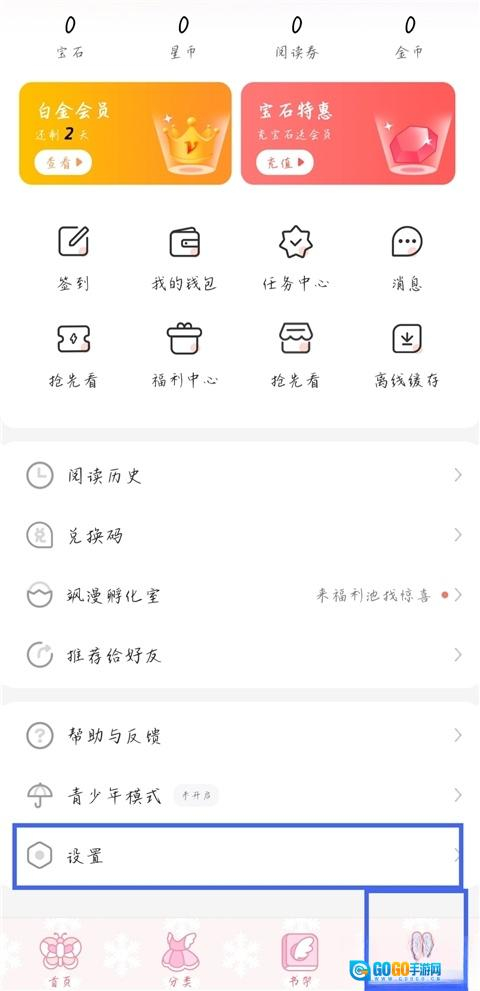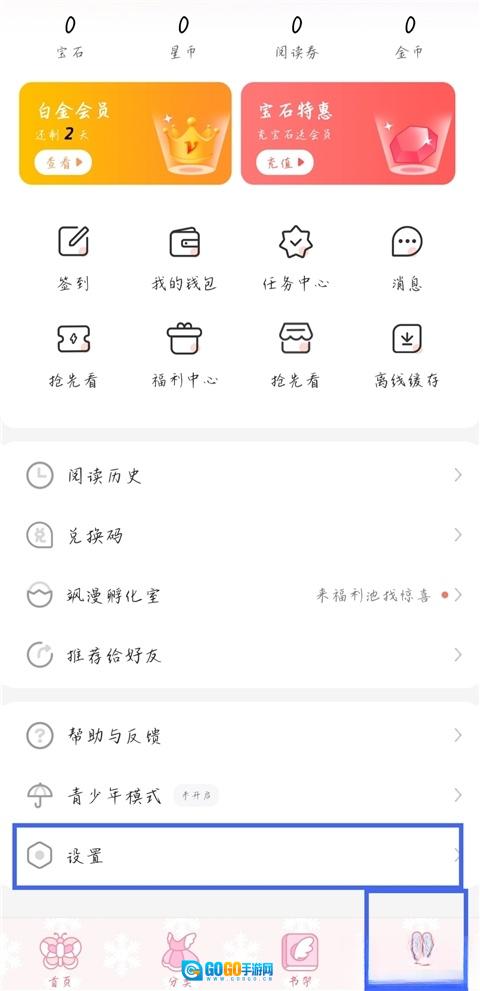 1、打开飒漫画,进入【我的】页面,点击【设置】。