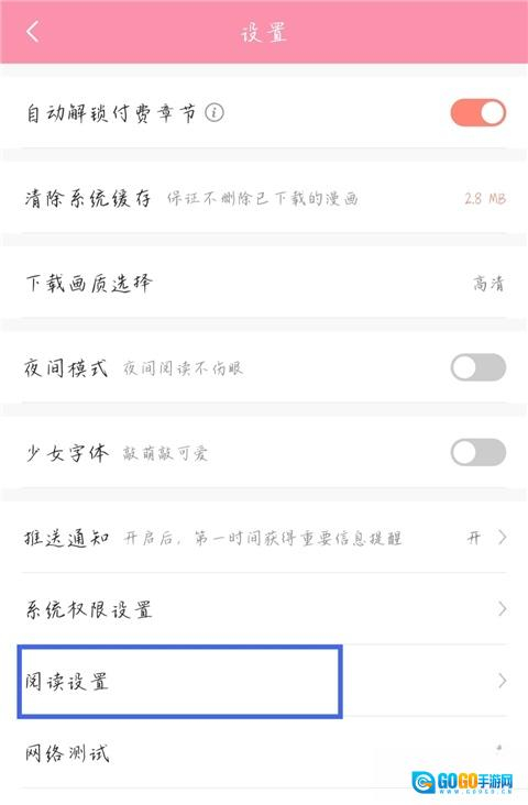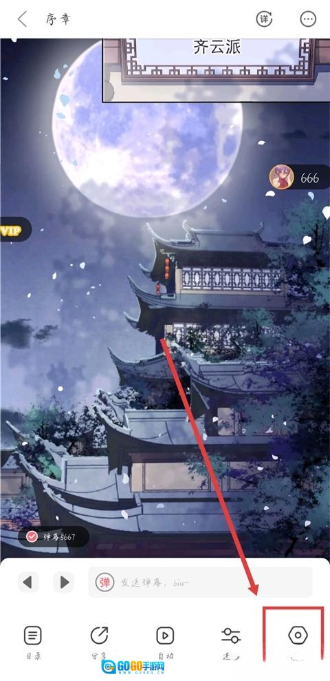 1、打开看漫画,进入漫画中,点击右下角的设置。