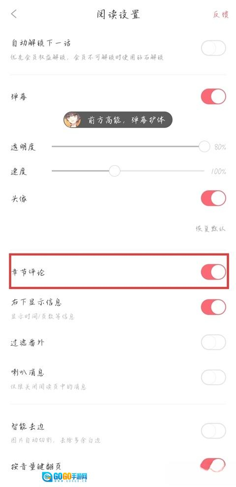 3、将章节评论的开关关闭即可,后续在观看完一章后见不再显示章节评论。