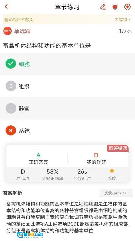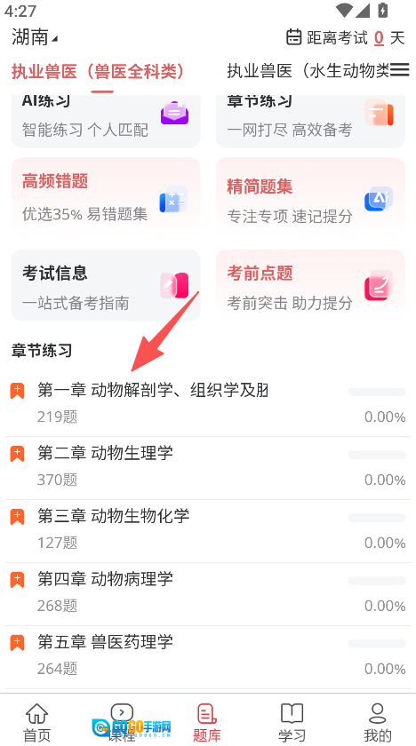 3、在题库板块选择对应的学科章节,就能开始进行题目练习了。
