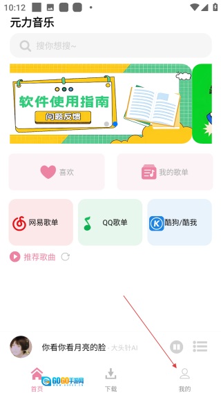 1、打开元力音乐首页后,点击底部的【我的】选项,即可进入个人中心界面。