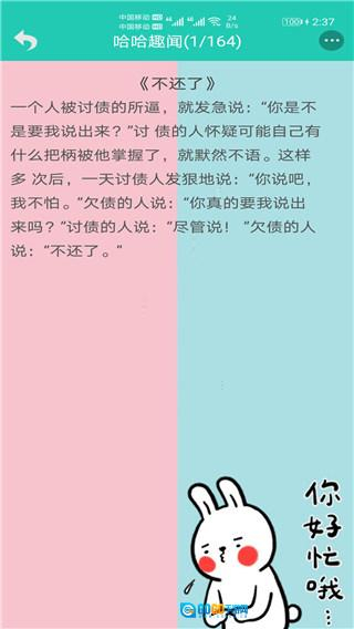 笑话大王是一款专注于为用户带来欢乐、舒缓心情的笑话合集软件。在漫长又疲惫的日常里,我们总盼着用欢声笑语驱散心头的阴霾。打开这款软件,快乐气息扑面而来——由搞怪表情符号拼成的“逗比”二字,一眼就让人忍俊不禁。它贴心地把所有笑话划分成二十六个主题板块,内容绝不重复。不管是单身的朋友,还是觉得自己不太合群的人,只要常看里面的笑话,就能提升社交能力,成为大家都喜欢的人。