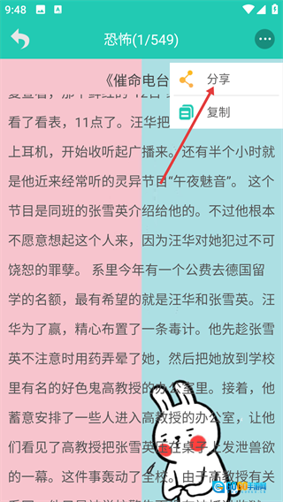 3、在弹出的功能操作菜单中,点击“分享”选项。