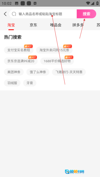 1、在首页,点击顶部的【搜索框】,即可进入搜索功能界面。