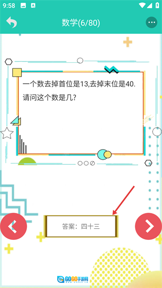2、点击“数学”分类选项,即可进入数学类脑筋急转弯的题目展示页面。