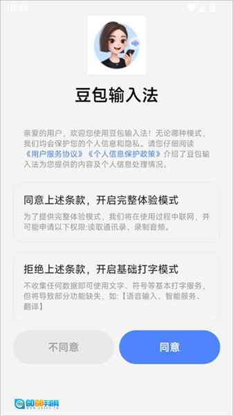 3、点击同意,就可以开始体验豆包输入法了