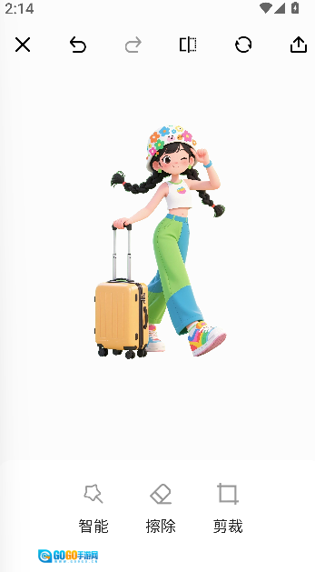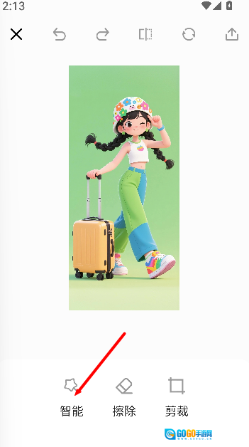 4、导入操作完成后,点击界面上的“智能”按钮,软件便会自动对内容进行识别,并将主体部分抠取出来。