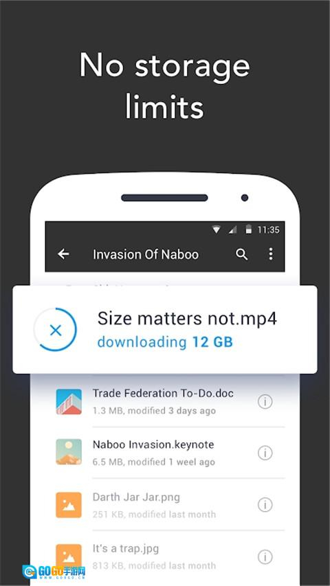 3、没有存储限制。任何大小的文件都可以添加到同步文件夹中,也可以高速传输