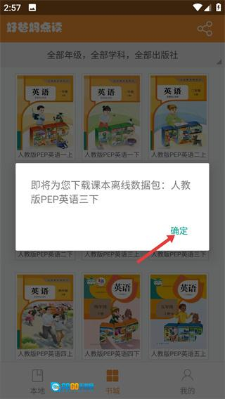4、当弹出【即将为您下载课本离线数据包:人教版PEP英语三下】的提示后,点击【确定】按钮即可开始下载该数据包。