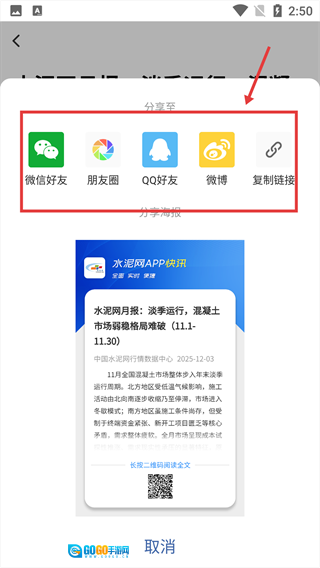 3、进入文章详情页面后,点击页面底部的“分享”按钮,即可弹出涵盖多种分享渠道的选项弹窗。