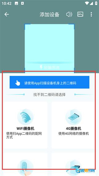 进入添加设备页面后,你可以通过扫描二维码,或者选择【WiFi摄像机】等设备类型,来完成设备添加的流程。