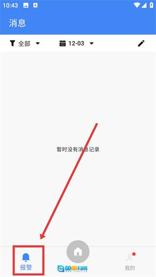 3、在底部导航栏点击【报警】选项,即可切换至消息页面,查看报警相关的信息记录。