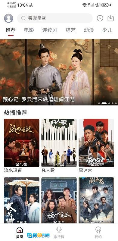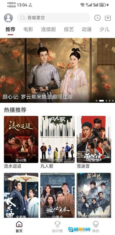 进入首页,可以看到推荐、电影、连续剧、综艺、动漫、少儿多个栏目;