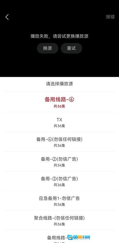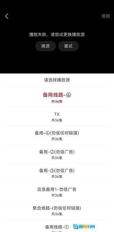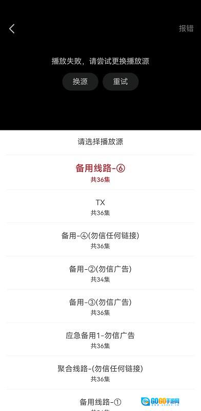 如果提示播放失败,请尝试更换播放源;