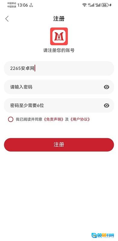 输入账户+密码,点击注册即可;
