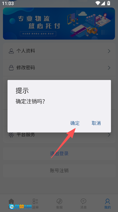 3、在提示框内点击确定按钮,即可完成账号注销的操作流程。