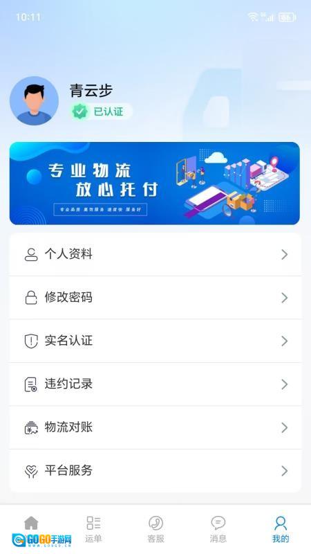 2、我的板块集中呈现各类功能选项,账号管理、物流对账等服务在同一页面展示,增强功能访问的便捷性。