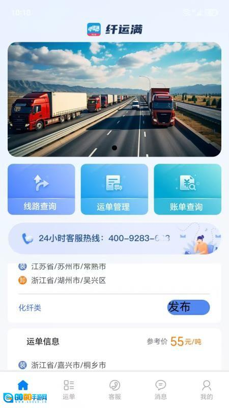 1、底部设置首页、运单、客服、消息、我的等板块,“我的”板块整合了多种功能选项,功能分区清晰明确,方便用户快速进入对应的操作板块。