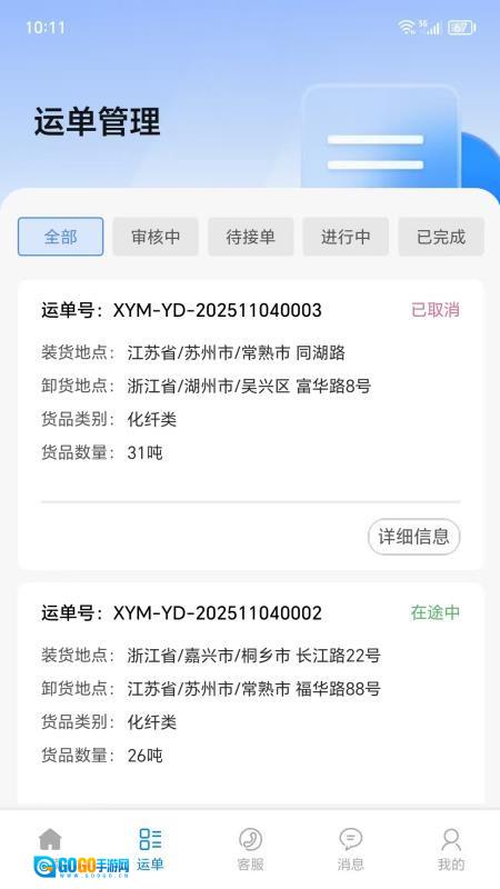 1、具备板块切换能力,底部导航支持在首页、运单、客服、消息、我的这几个选项间切换,点击后可进入相应板块进行各类操作。