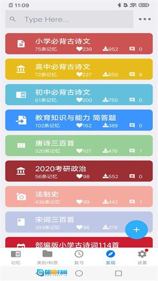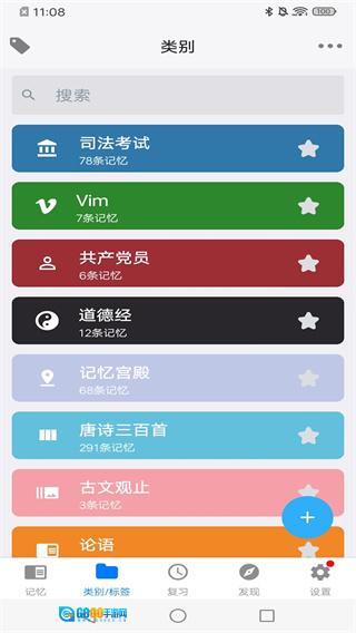 支持快速检索功能,复习界面支持按类别和标签进行筛选,方便用户查找需要记忆的内容。