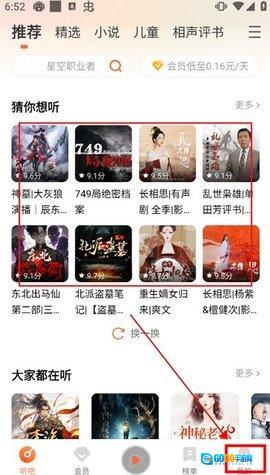 2、接着,进入首页后就能看到琳琅满目的书籍,任意点击一本都可以免费收听。