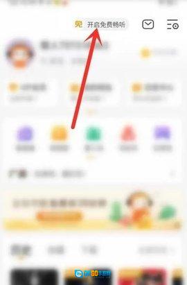 2.进到我的页面,选择顶部“开启免费畅听”图标。