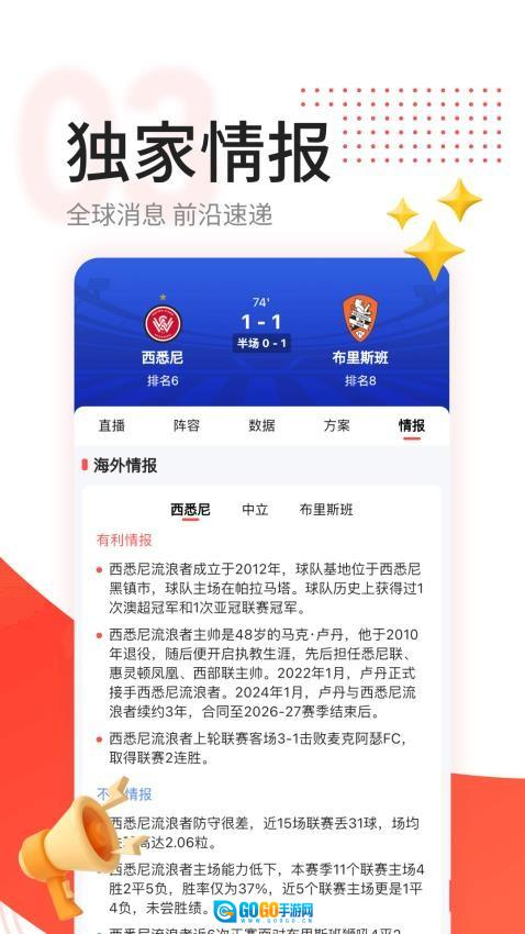 3、更新及时迅速:赛事比分、动态与情报均保持高速同步更新,帮助用户时刻掌握赛场最新情况。