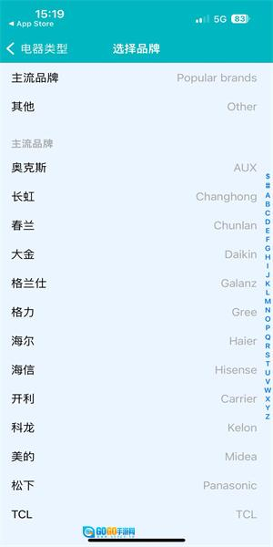 3、根据您家中实际使用的电器品牌,在列表中选择对应的品牌名称。