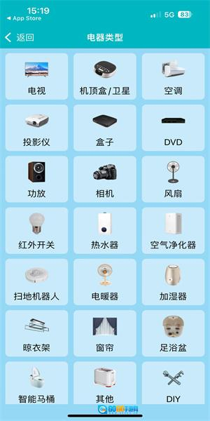 2、从丰富的家电类型中选择您需要控制的设备,包括空调、电视、投影仪等多种电器。