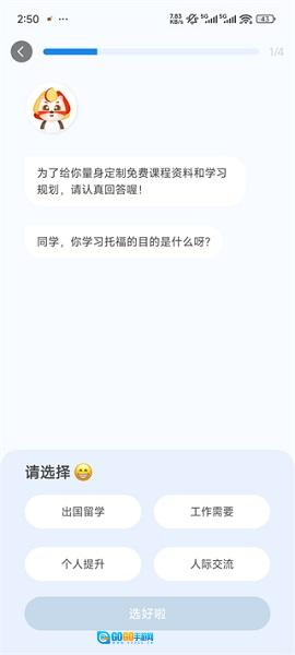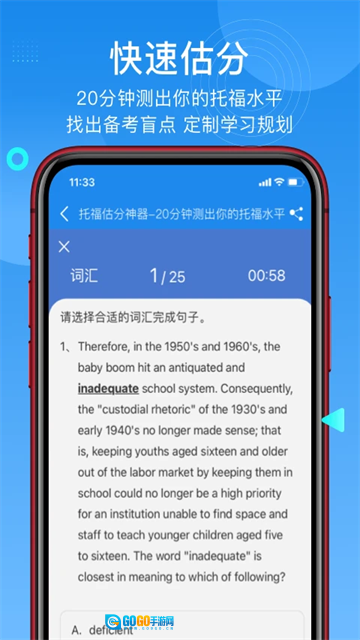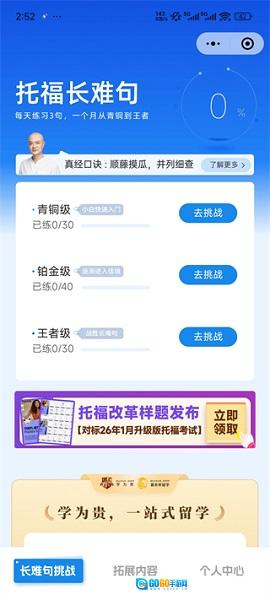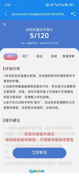 4、能力测试:由一支拥有12年以上教学经验的教师团队开发,可以在20分钟内快速评估当前的托福水平,并智能生成个性化的准备计划。