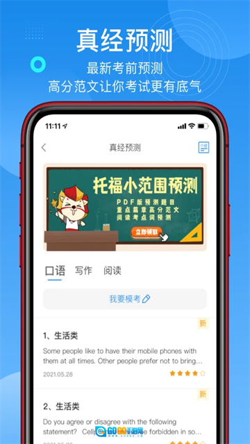 1、真正的经典预测:基于过去五年数千套考试记忆的大数据,每月更新英语口语、写作和阅读的高频预测问题,以准确识别关键点。