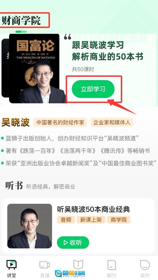 3、财商学院的“立即学习”栏目提供各类商业知识课程,包含营销策略、财务管理等实用技能的视频教学内容。