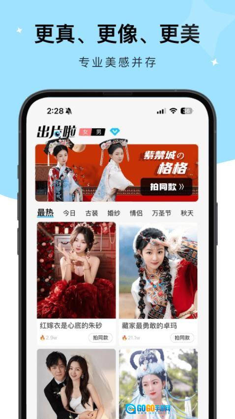 1、热门模板选用:首页推荐当下热门写真模板,用户可直接点击“拍同款”,快速生成风格一致的个性化照片。