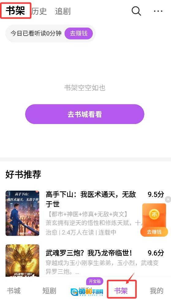 4、书架的作用是收藏已阅读或正在追更的作品,能够自动记录阅读进度,还会高亮显示更新提示。
